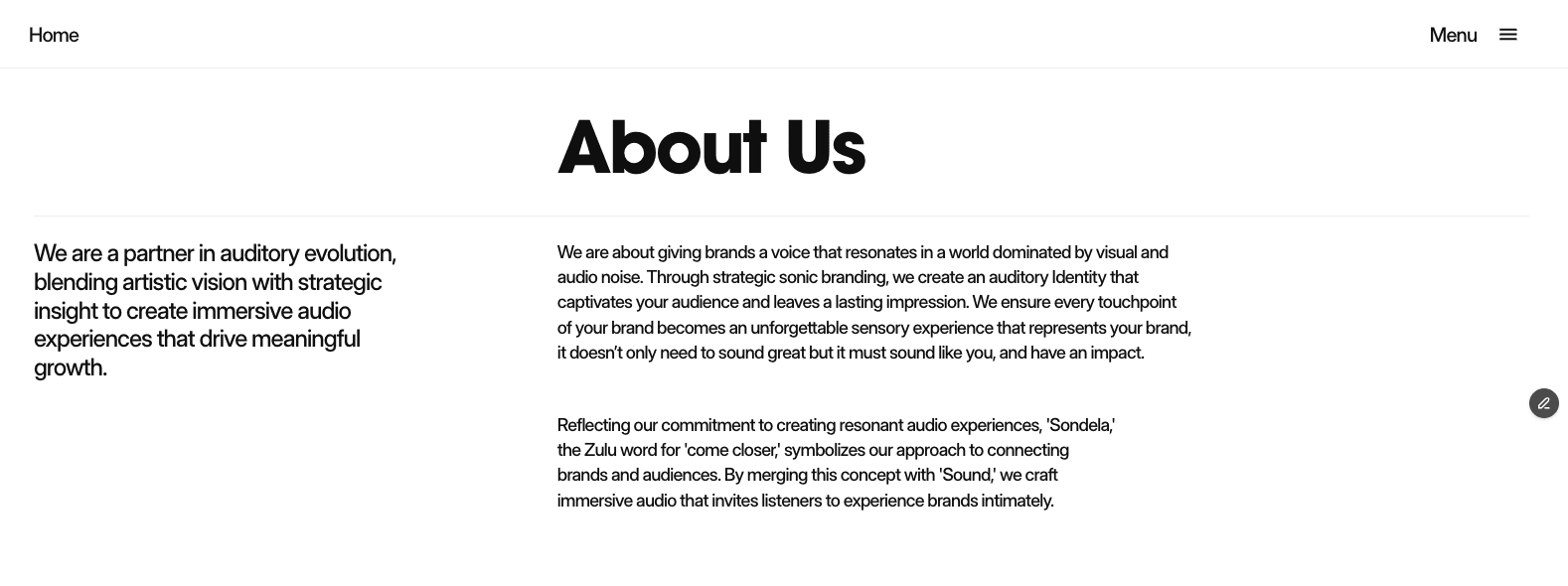 On the About page, the goal wasn’t to explain who Soundela is. It was to hint at it.
